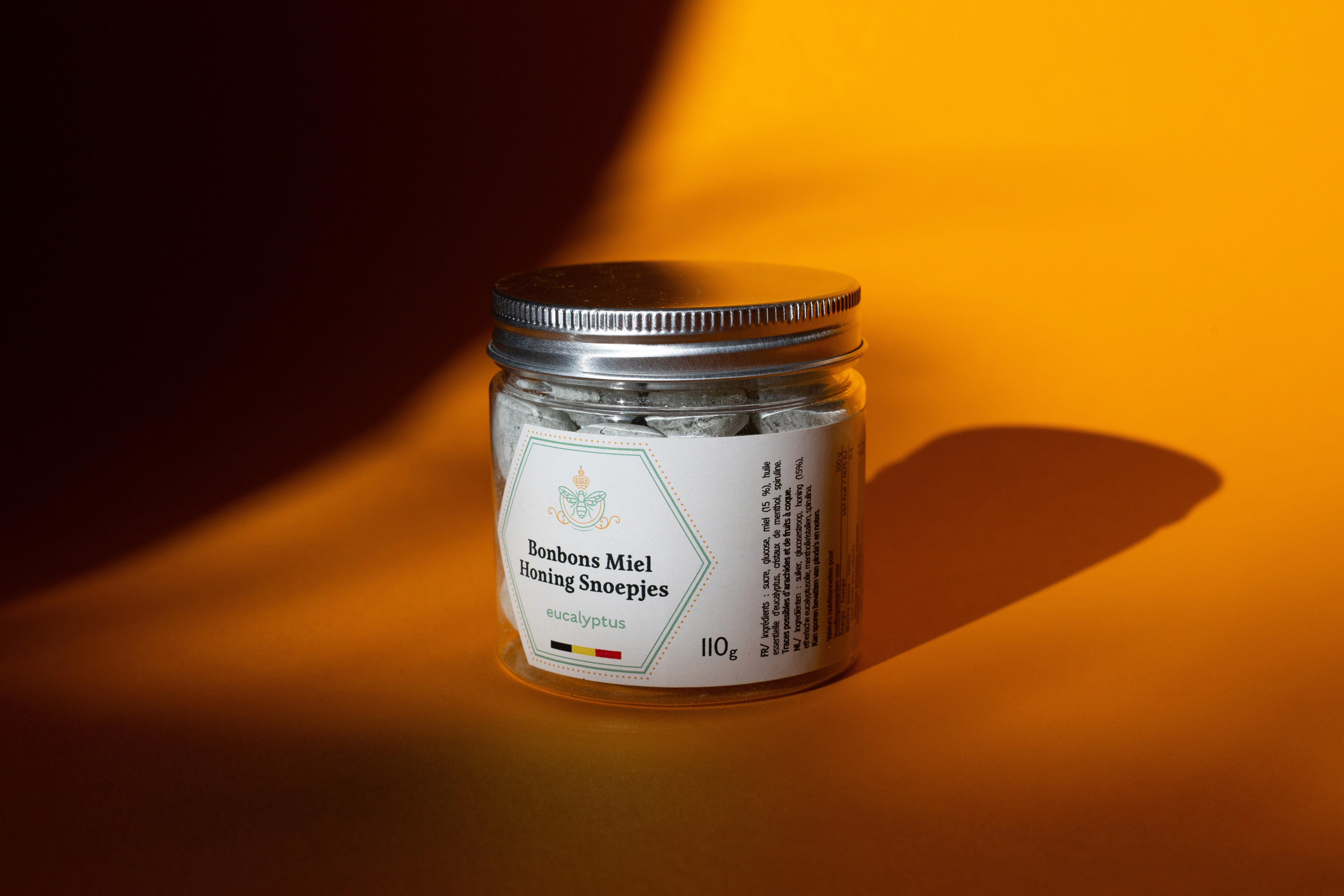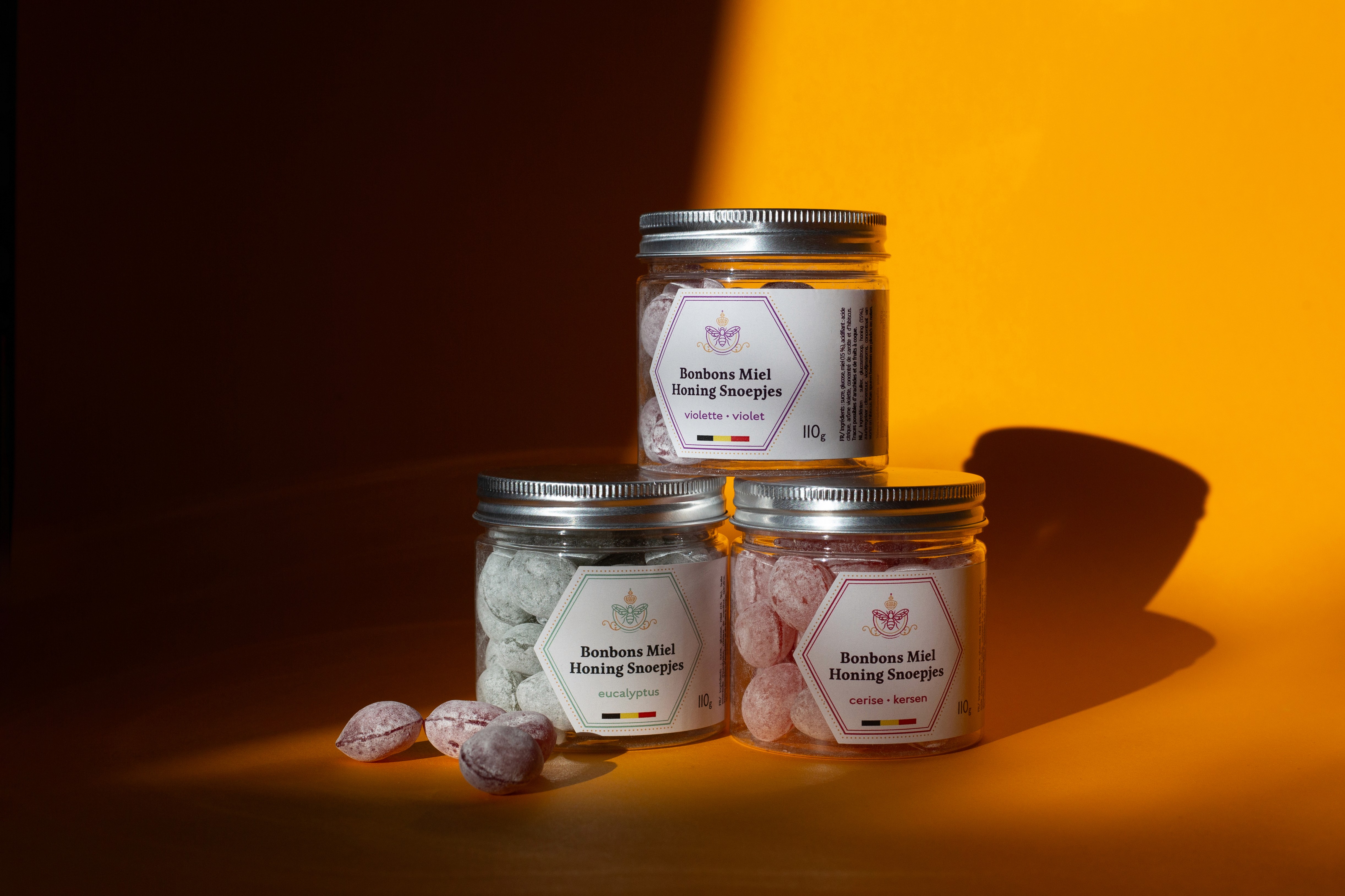 Beelgium est une marque belge engagée dans la valorisation du miel et du travail des abeilles. Dans le cadre du développement d’une nouvelle gamme de produits, la marque a lancé des bonbons au miel déclinés en différentes saveurs, pensés comme des sucreries naturelles, à la fois saines et gourmandes. Le design des étiquettes a été pensé dans une approche claire et épurée afin de mettre le produit au centre de l’attention. La composition privilégie la lisibilité et la simplicité, avec une structure graphique qui met en valeur les informations essentielles tout en laissant apparaître le produit. Chaque saveur est identifiée par une couleur spécifique, permettant de distinguer facilement les variantes tout en conservant une identité visuelle cohérente pour l’ensemble de la gamme. La découpe de l’étiquette s’inspire de l’univers du miel, tout en restant discrète pour laisser la place au produit. L’ensemble crée un packaging à la fois sobre, identifiable et adapté à l’univers artisanal et naturel de la marque.